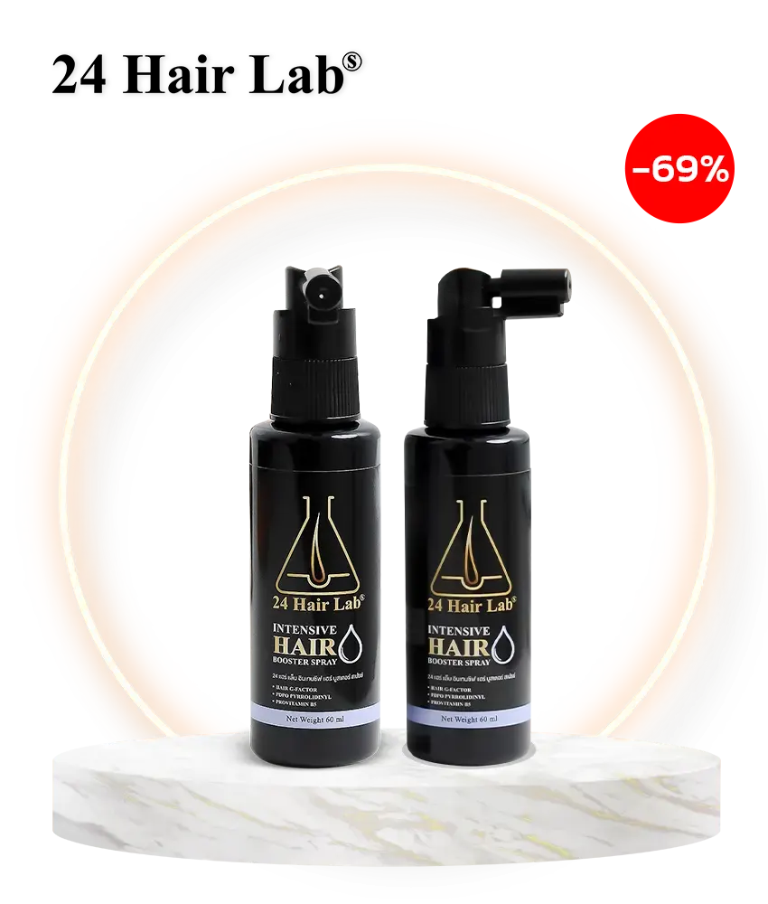 เพราะเส้นผมคือสิ่งสำคัญที่สะท้อนถึงความมั่นใจในตัวเอง แต่หลายคนต้องเผชิญกับปัญหาผมร่วง ผมบาง หรือหนังศีรษะที่ไม่แข็งแรง ซึ่งทำให้รู้สึกไม่มั่นใจ 24 Hair Labs เข้าใจปัญหานี้เป็นอย่างดี จากประสบการณ์จริงของเราในการต่อสู้กับปัญหาผมร่วง เราจึงได้พัฒนาสูตรสเปรย์บำรุงผมที่ใช้ส่วนผสมคุณภาพสูงที่ได้รับการยอมรับจากผลการทดลอง BIORAN HAIR G-FACTOR และ PDPO PYRROLIDINYL ซึ่งช่วยกระตุ้นการเจริญเติบโตของเส้นผมและฟื้นฟูสภาพหนังศีรษะได้อย่างมีประสิทธิภาพ